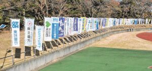 あすふくしま駅伝開催です。スタート会場にものぼり旗が立てられ、準備は万端です。